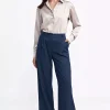 Eleganckie spodnie damskie plus size granatowe (728) MOON odcienie niebieskiego